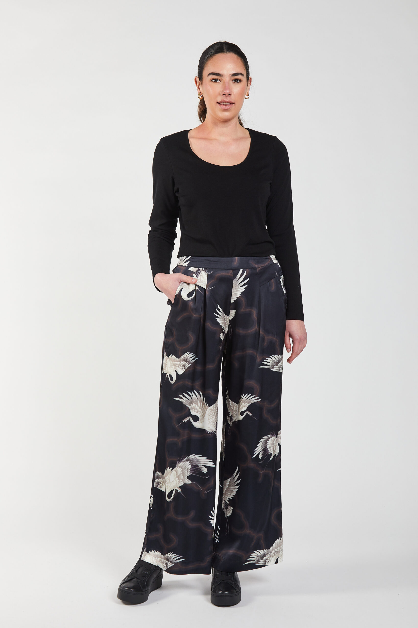 The Crane Pleat Palazzo immediately stands out for its luxurious texture and graceful movement. Crafted from an exclusive high quality viscose that feels exceptionally smooth and soft against the skin. This luminous quality gives these pants a stunning elevated finish.