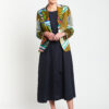 A true masterpiece in craftsmanship, the Picasso Blazer makes a confident statement with its striking abstract print, a vibrant kaleidoscope of colours set against a rich copper base.