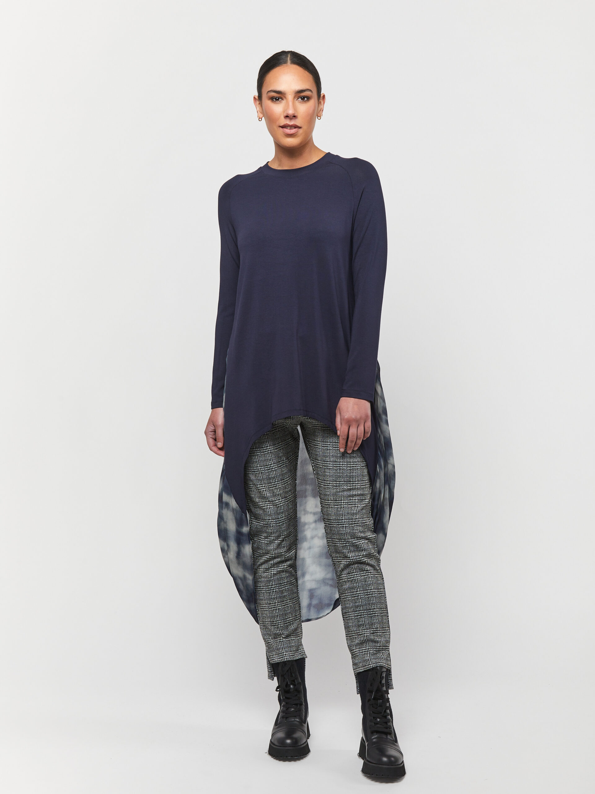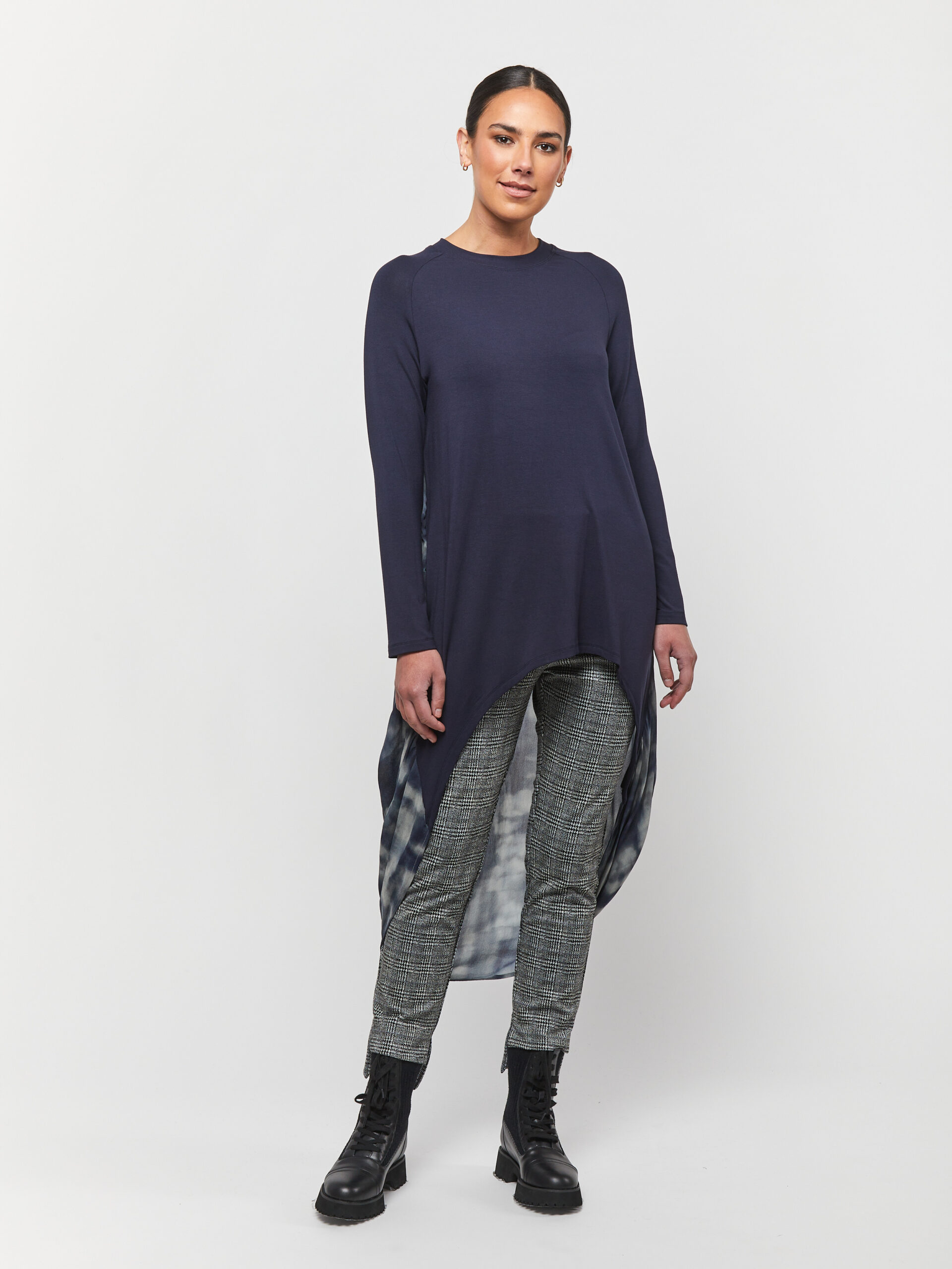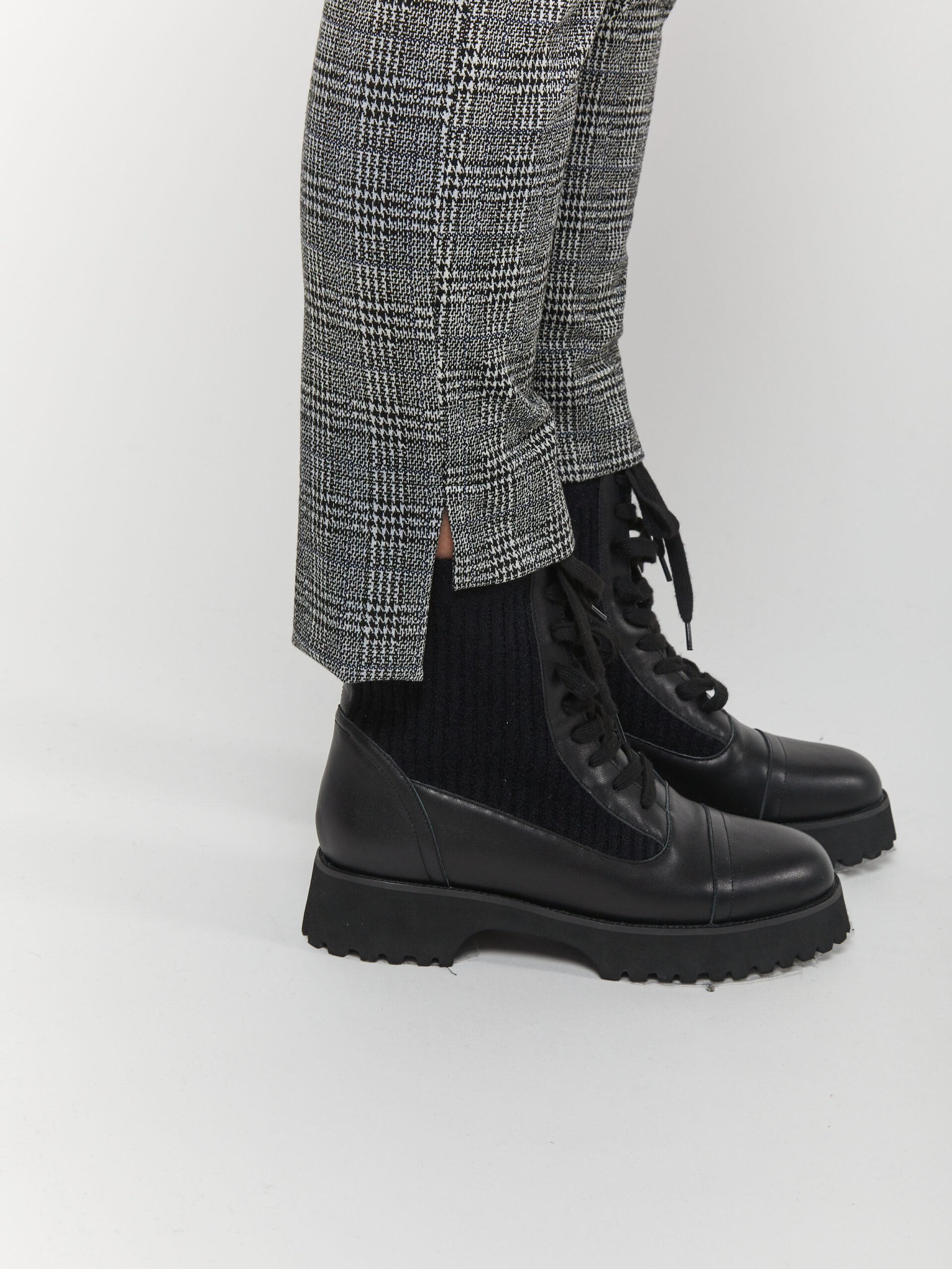 Update your wardrobe with the sleek and sophisticated Prince of Wales Step Pant, crafted from luxurious viscose ponti, a timeless steel grey and black check pattern.