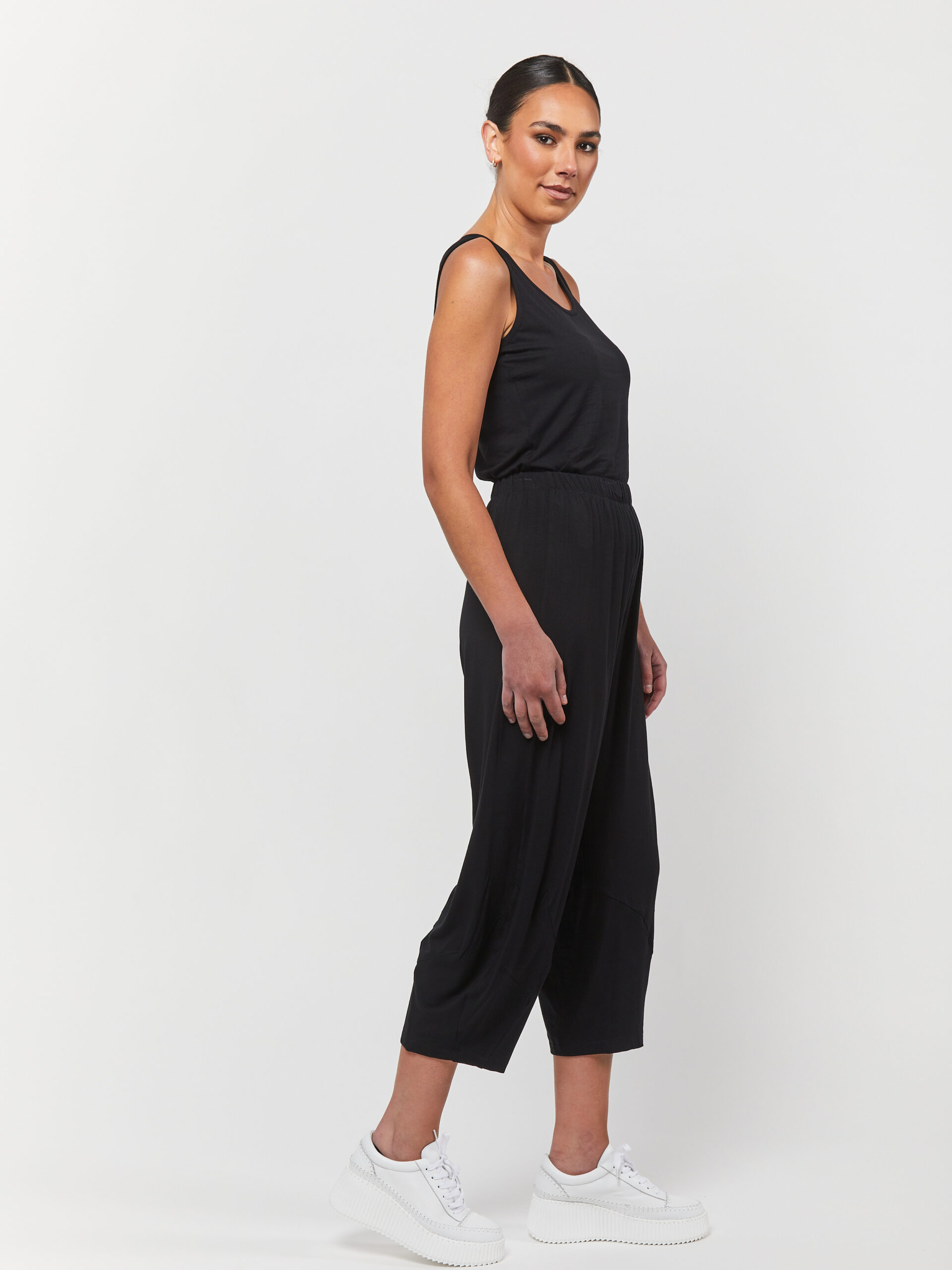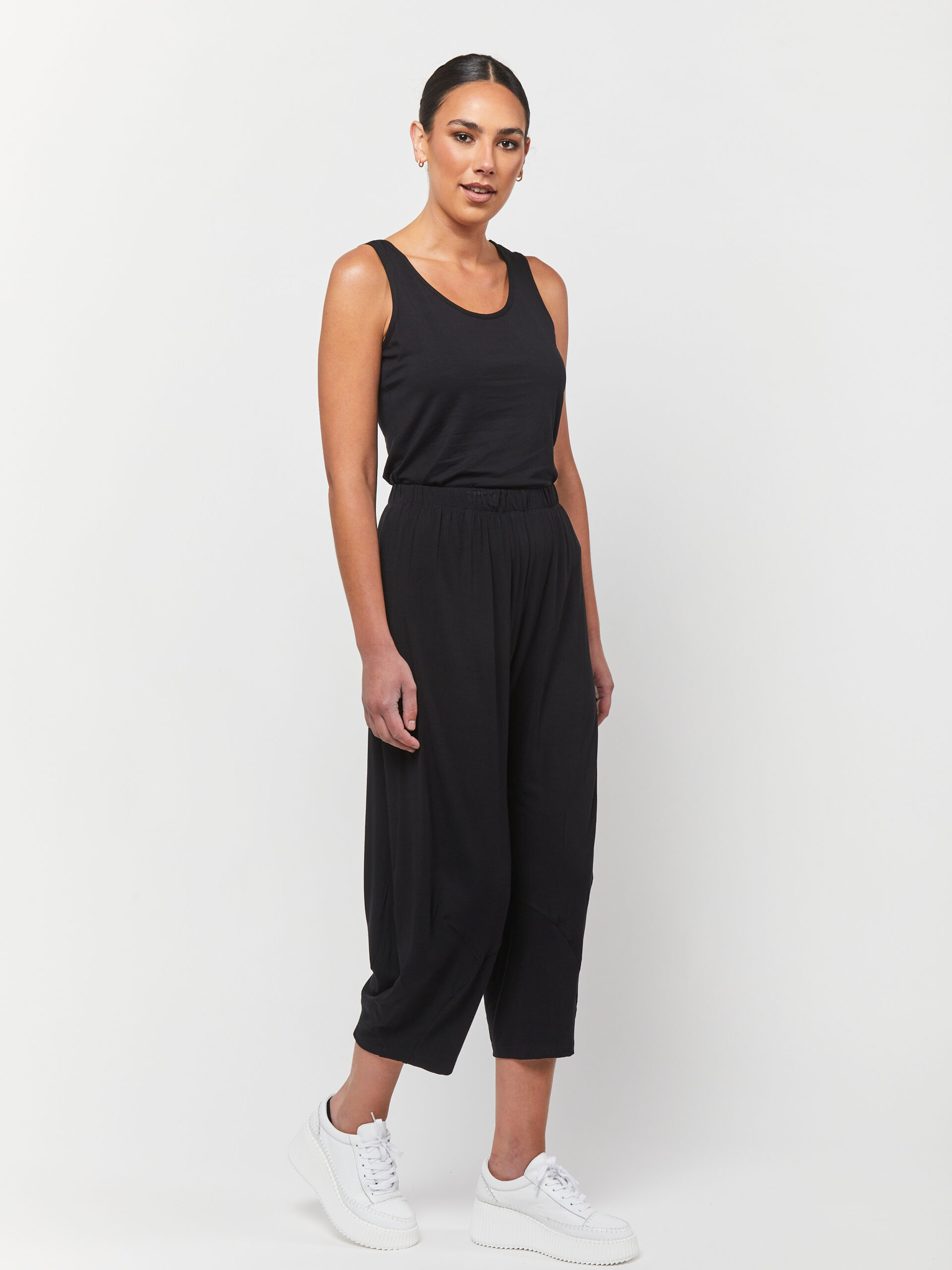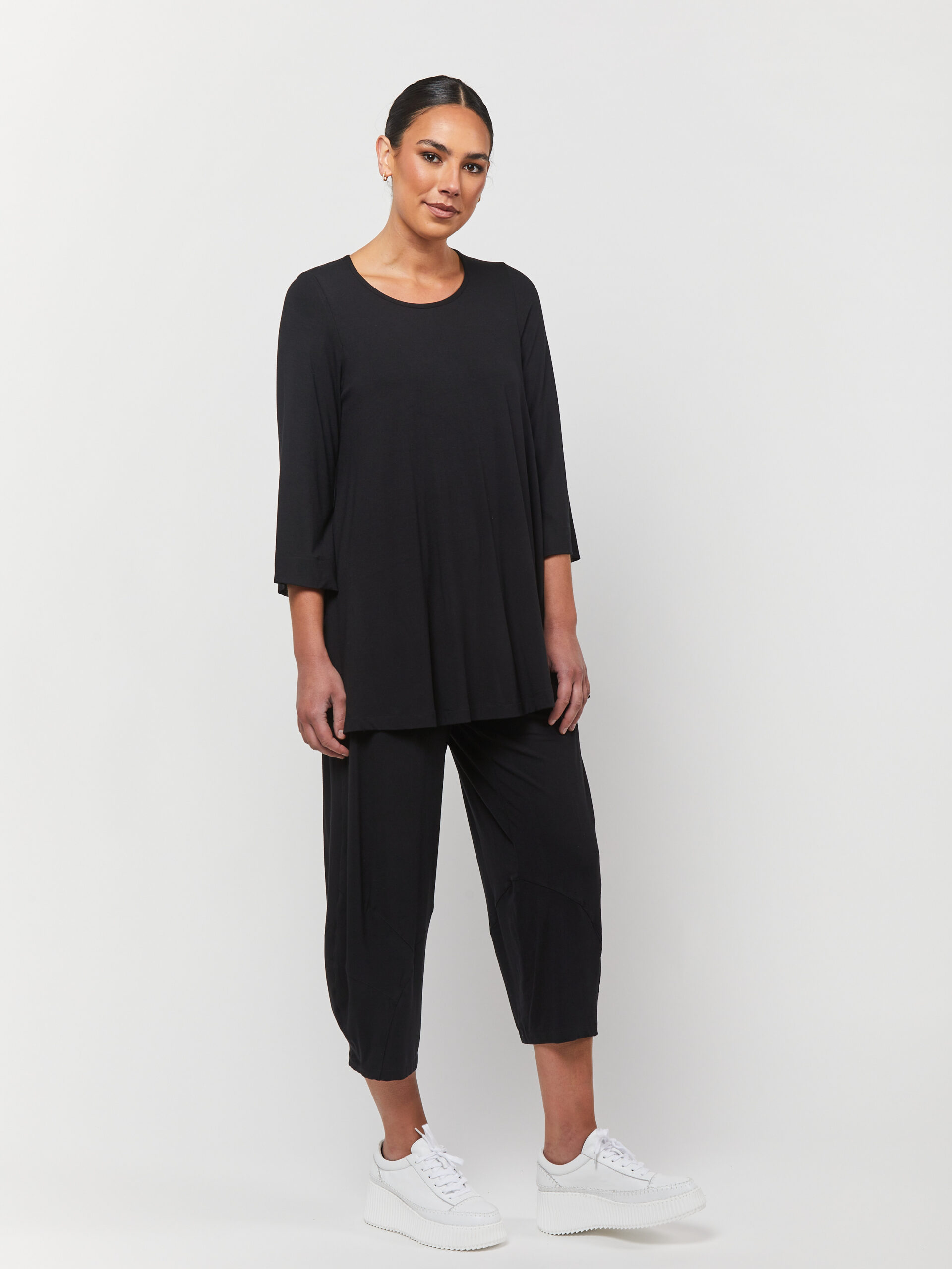 The silhouette is gently relaxed through the leg, finishing at a cropped length that flatters the ankle. Sculptural seam detailing and intricate pattern techniques at the lower leg creates a subtle contoured effect, adding shape and interest. Designed to move with the body, the soft stretch ponti falls cleanly for a sleek, elongating line.