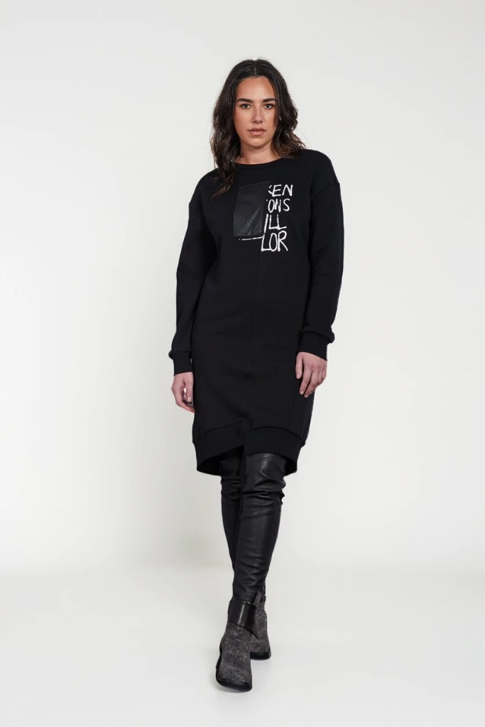 Gently contouring the body, creating a clean, second-skin fit, designed to move fluidly with the wearer. As the leg transitions downward, sculpted panels of high-quality vegan leather. These panels are thoughtfully shaped and seamed, enhancing the leg line while adding subtle architectural interest. The vegan leather has a supple handfeel and a soft sheen.
